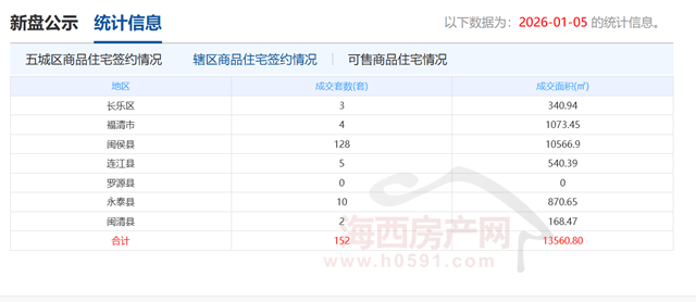 通过2026年1月5日的网签数据表能够看到,福州高新区的行政架构调整已全面落地,高新区网签数据均为0。过去高新区零丁办理的楼盘存案、公共办事、变动为七县(市)区,